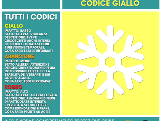 Codice giallo (stato di vigilanza) previsto dalle 6.00 alle 15.00