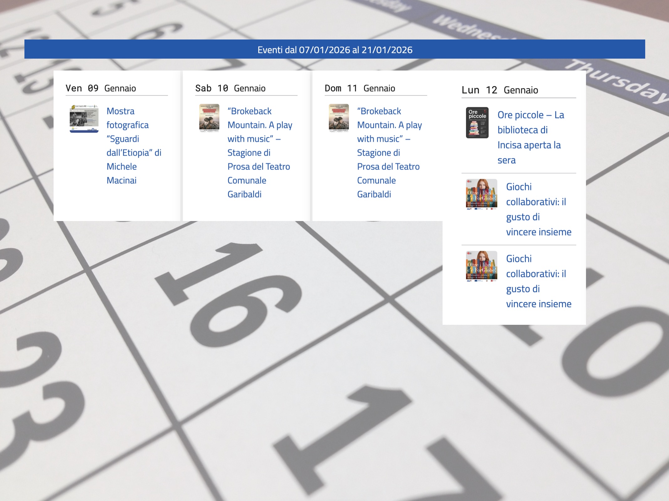L’inizio della prossima settimana sarà invece all’insegna della cultura, con la biblioteca Rovai di Incisa che osserverà un’apertura serale, lunedì 12 gennaio, dalle 21 alle 23, con tutti i servizi bibliotecari attivi per chi vuole studiare, leggere, concentrarsi o semplicemente godersi un po’ di compagnia. L’iniziativa è promossa in occasione dell’appuntamento “Giochi collaborativi: il gusto di vincere insieme”, rivolto a giovani e adulti e dedicato ai giochi da tavolo moderni, semplici da apprendere e spesso poco conosciuti, nei quali la collaborazione è fondamentale. Un’esperienza per riscoprire la bellezza del gioco come esperienza collettiva e inclusiva. L’incontro, della durata di due ore circa, si svolgerà alle ore 21 di lunedì 12 gennaio. La partecipazione è gratuita, con prenotazione obbligatoria scrivendo alla mail biblioteca.rovai@comunefiv.it o chiamando il numero 055.9125445.