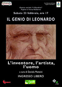 A 500 anni dalla morte di Leonardo Da Vinci, il centro sociale “Il Giardino” propone una conferenza dal titolo “Il Genio di Leonardo. L’inventore, l’artista, l’uomo” a cura di Daniela Matteini. L’appuntamento, a ingresso libero, è fissato presso la sede dell’associazione (giardini Dalla Chiesa, Figline) per sabato 23 febbraio alle ore 17.